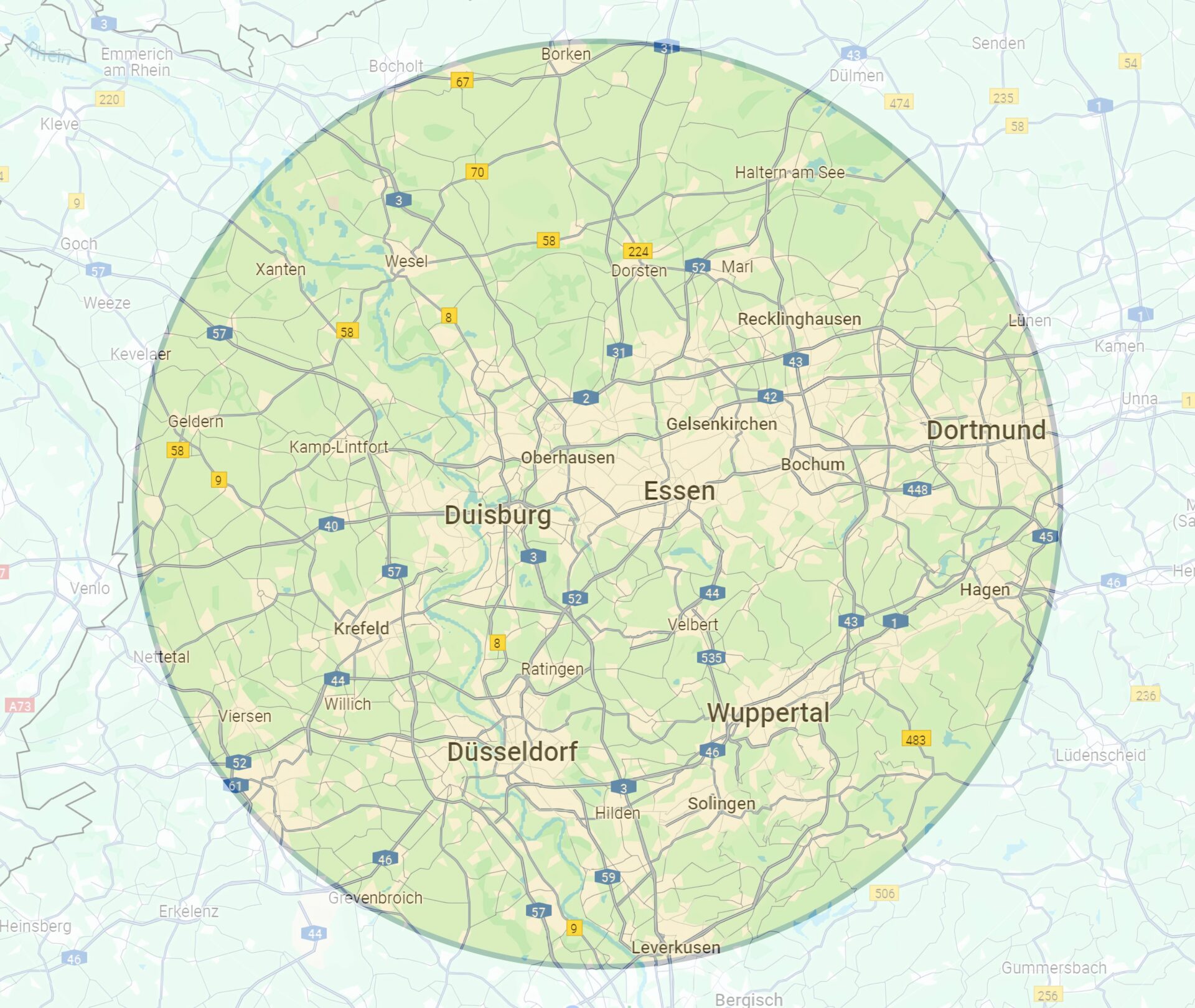 Von unserem Standort in Essen-Altenessen erreichen wir Kunden im gesamten Ruhrgebiet und darüber hinaus. Unser Einzugsgebiet umfasst einen Radius von rund 50 Kilometern – von Duisburg bis Dortmund und von Düsseldorf bis Gelsenkirchen. Egal wo Sie im Ruhrgebiet ansässig sind, Malerbetrieb Schumacher ist schnell und zuverlässig für Sie vor Ort.